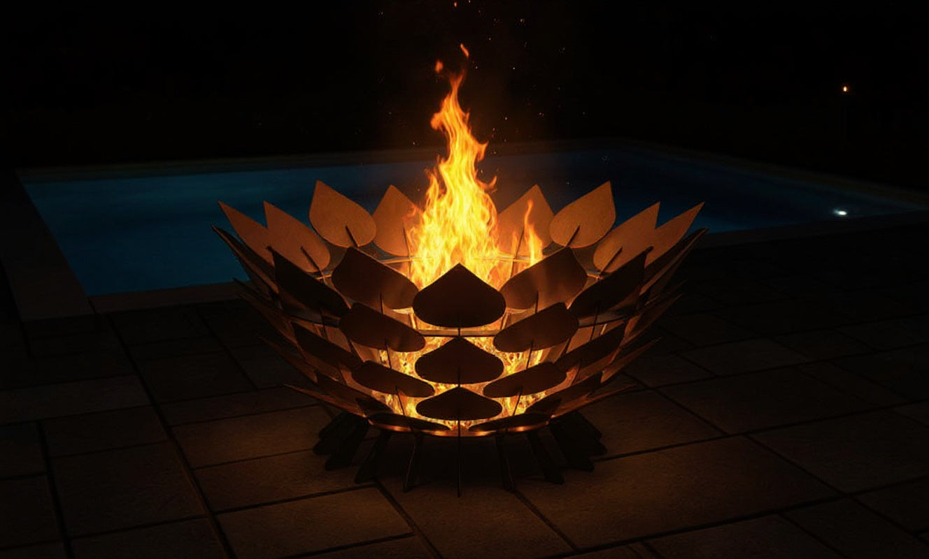 Crafted from heavy-gauge steel or naturally weathering Corten, each piece is precision cut and hand-assembled to achieve perfect symmetry and balance. The open leaf geometry not only accentuates the sculptural quality of the design but also amplifies airflow, producing a cleaner, brighter burn.