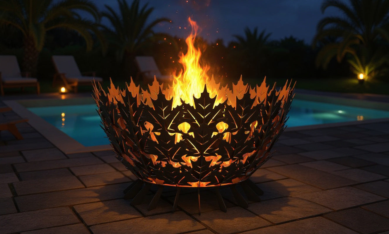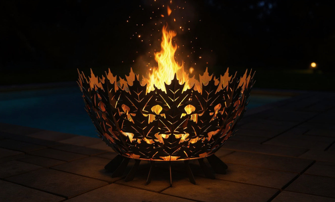 Inspired by the quiet beauty of falling leaves and the glow of autumn evenings, The Maple Hearth transforms the fire pit into a work of natural art. Each handcrafted panel is shaped like a stylized maple leaf, layered in harmonious symmetry to form a sculptural bowl that celebrates the rhythm of nature and the timeless allure of fire.
