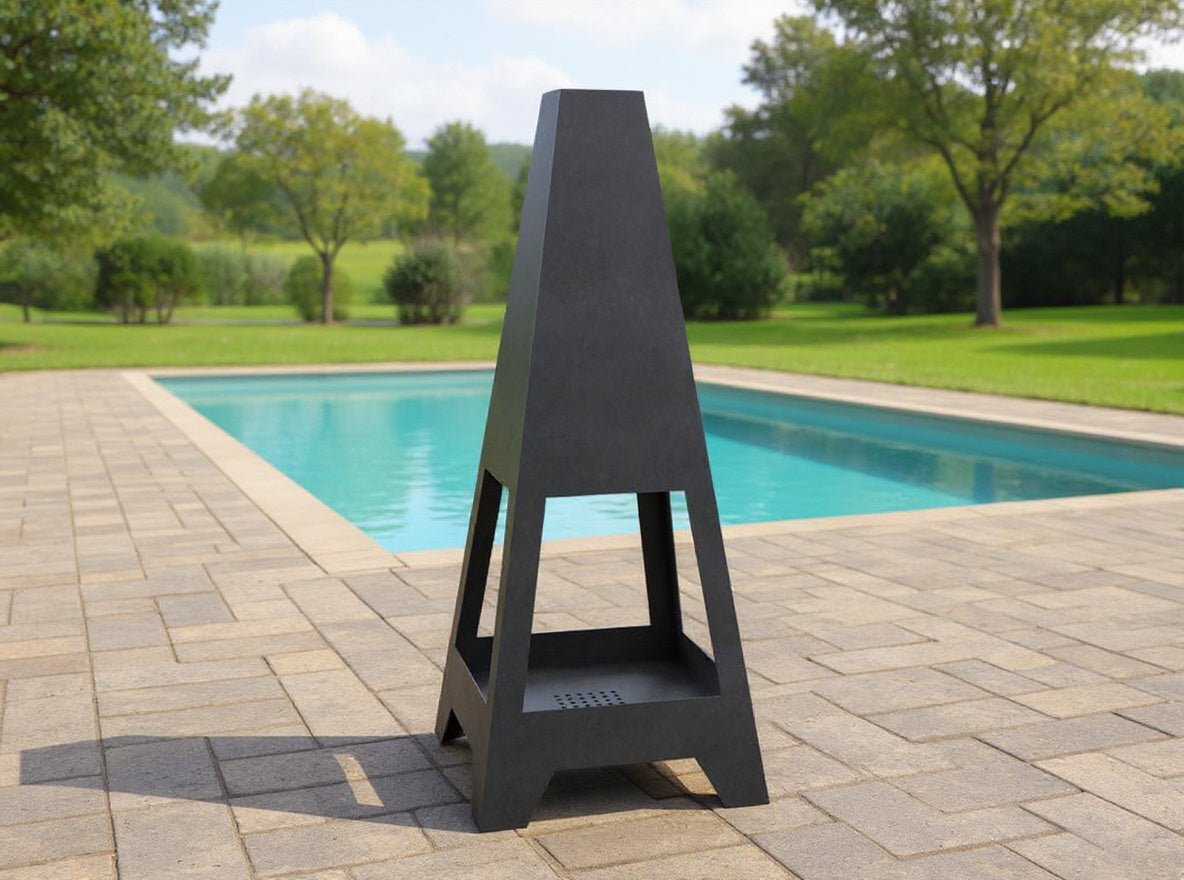 Crafted by hand from heavy-gauge steel or naturally weathering Corten, The Obelisk Halo embodies strength and artistry in perfect harmony. The open design maximizes airflow for a clean, consistent burn, while the tapered pyramid silhouette maintains a strong sculptural presence, even when the fire rests.