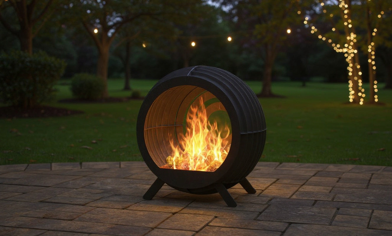 Dynamic, sculptural, and alive with light — the Luma Firepit redefines the art of fire. Formed from a series of precisely spaced vertical steel slats, its flowing, spherical silhouette creates a mesmerizing play of shadow and flame. The open section invites warmth and connection, transforming the fire into both focal point and experience.